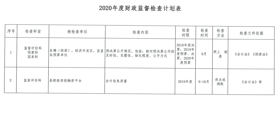 | 标题: | 关于印发2020年度财政监督检查计划的通知 | ||
