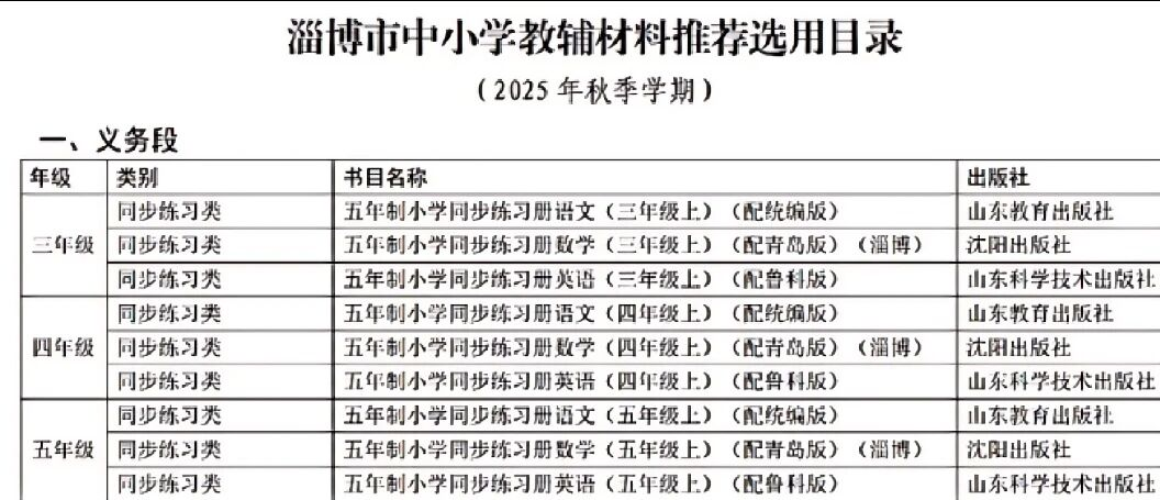 2025年秋季教辅资料征订目录公示