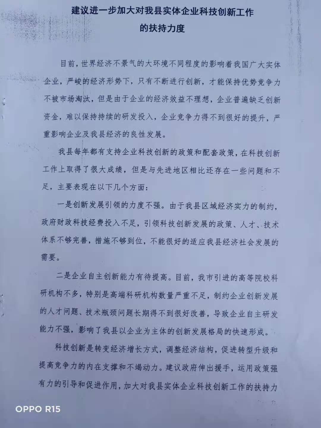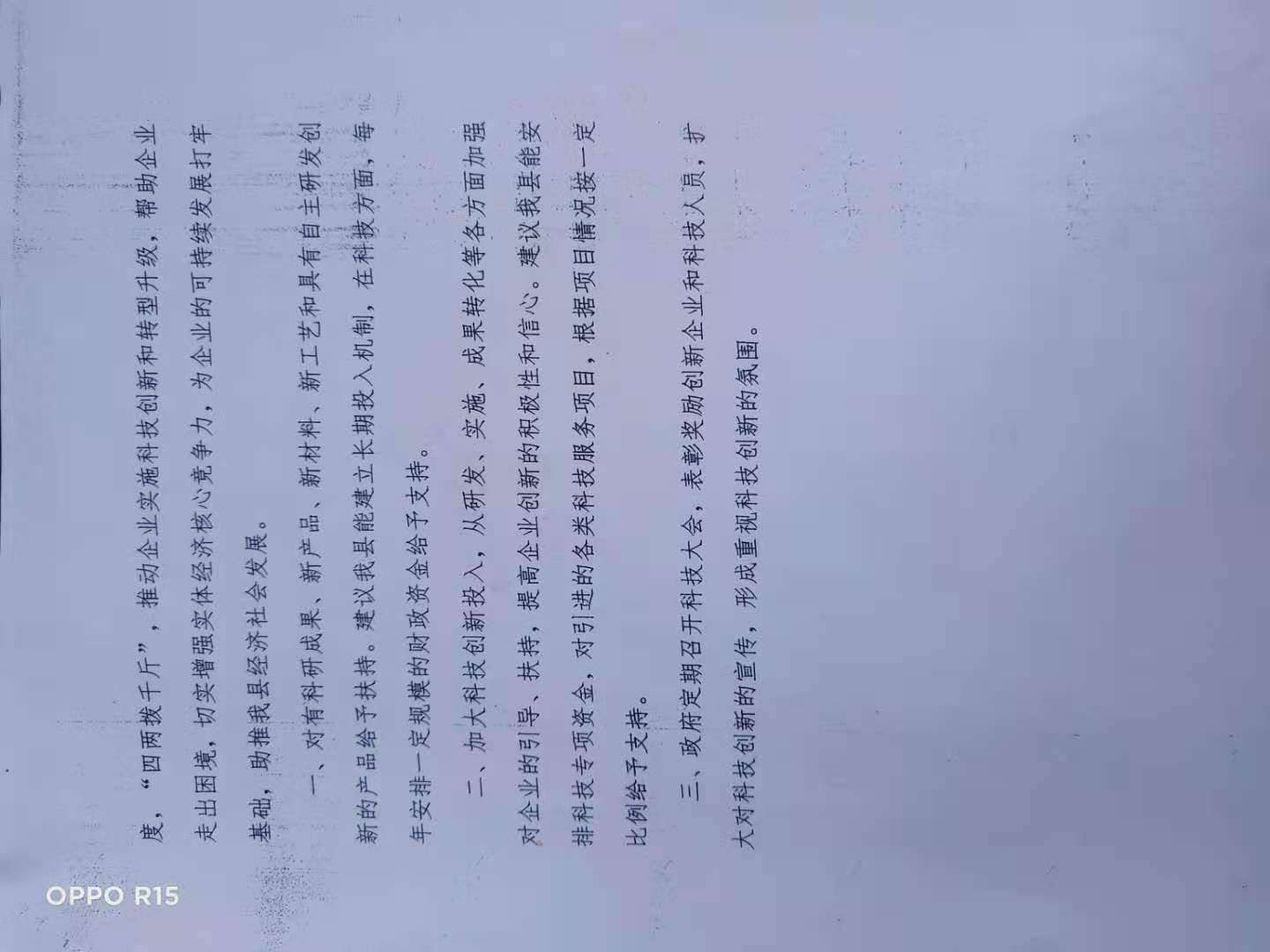 您们提出的“关于进一步加大对我县实体科技创新工作的扶持力度”的提案收悉。现答复如下: