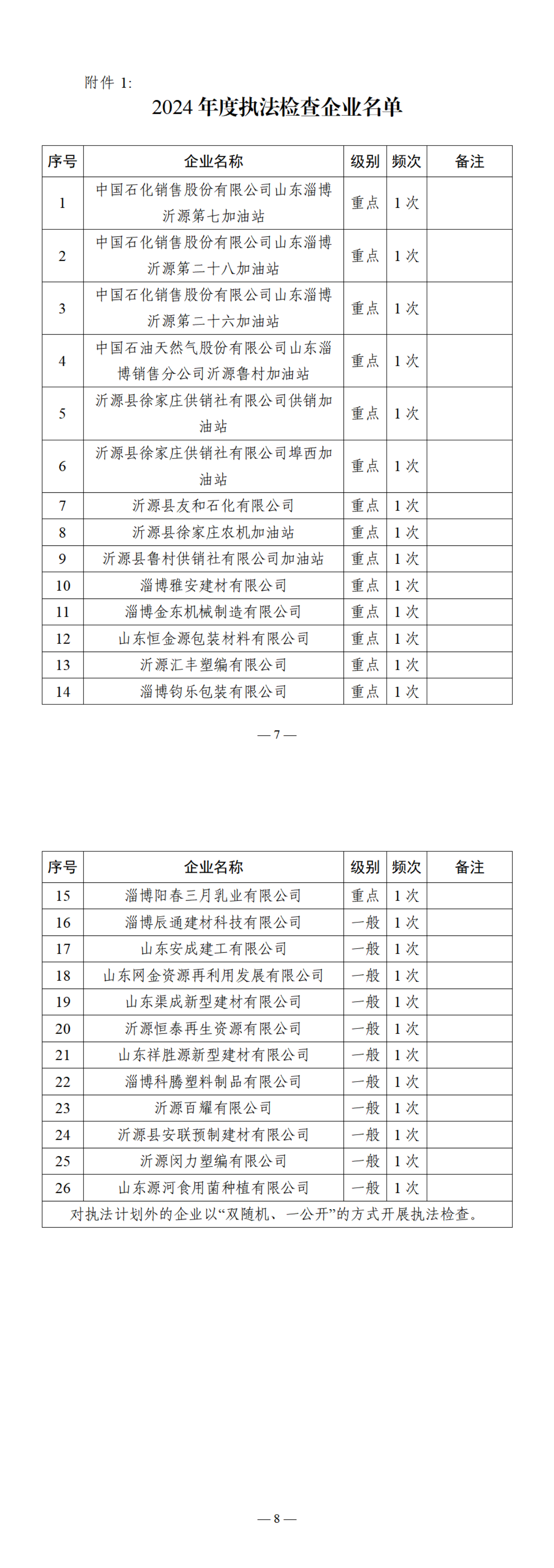附件:1.2024年度执法检查企业名单