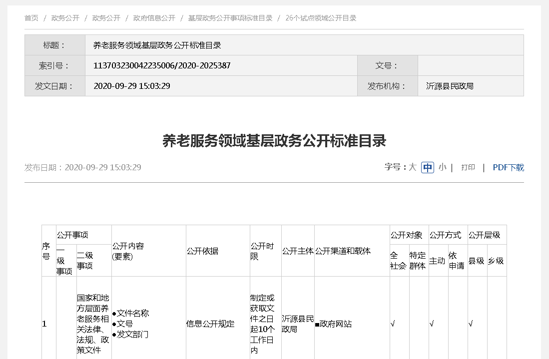 3、做好政务公开组织管理信息公开。及时对政务公开工作领导小组进行充实完善,根据人员调整和实际分工,对政务公开工作领导小组成员进行更换,确保责任到位,工作有人干。建立政务公开工作定期会议和培训制度,对政务公开工作进行安排部署。每年制定政务公开工作指南和政务公开工作年报,通过政务公开目录等形式方便群众查询信息,便于监督。2020年,根据县政府要求,制定《县民政局主动公开目录》、《县民政局基层政务公开事项标准目录》和《26个试点领域公开目录》等,提升了政务公开标准化建设进程。