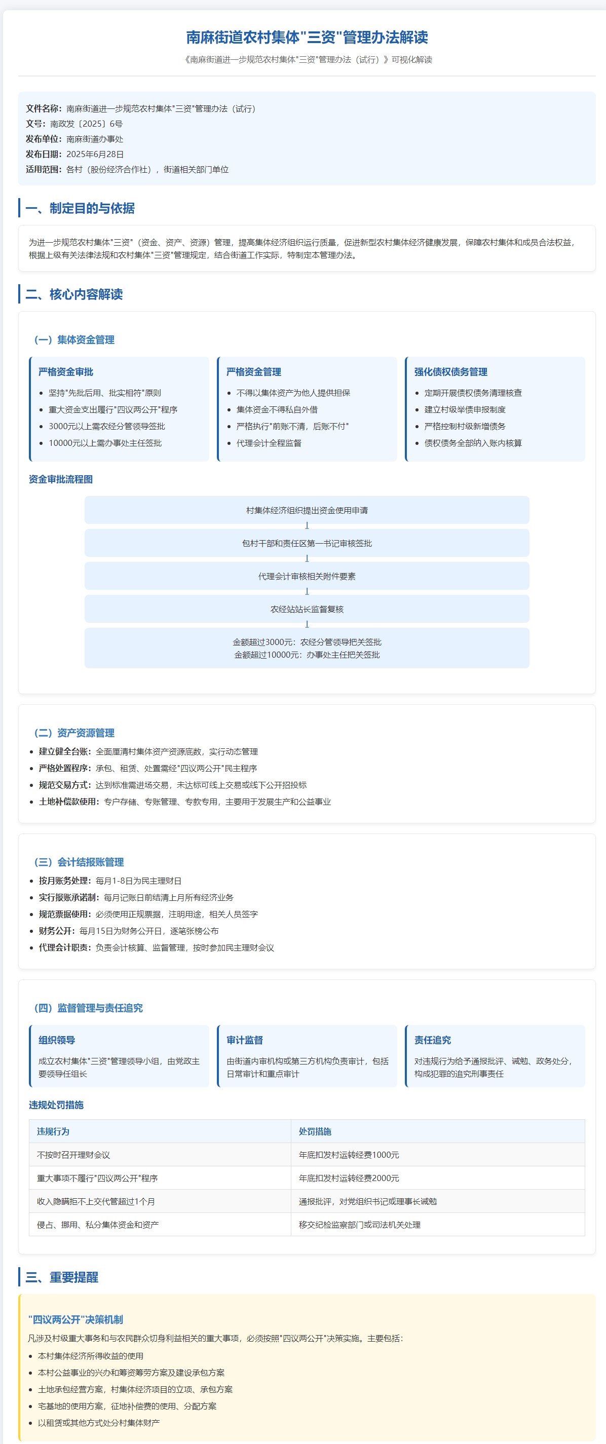 《南麻街道进一步规范农村集体“三资”管理办法(试行)》可视化解读