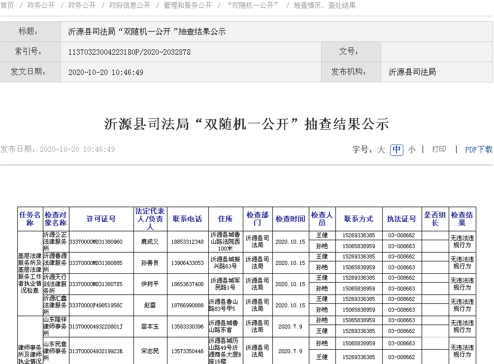 沂源县司法局在职责范围内,负责主动或依申请公开下列各类政府信息: