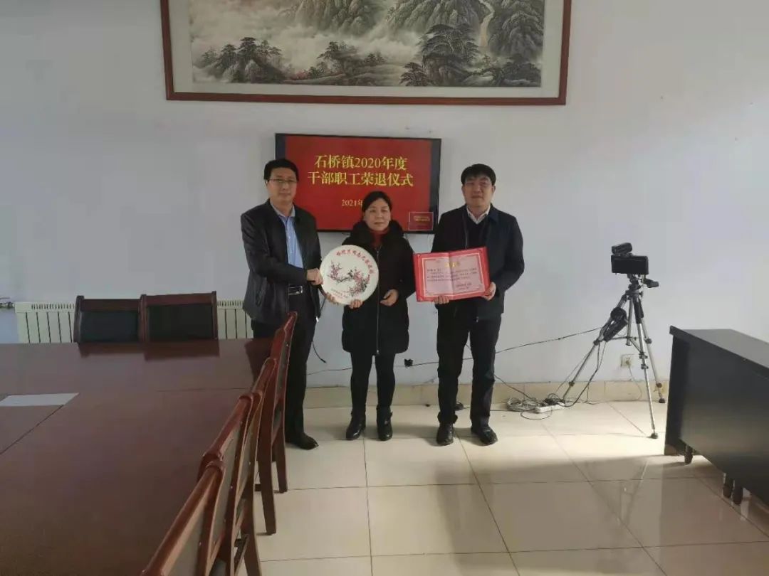 为全面贯彻落实习近平总书记关于老干部工作的指示精神,用心用情做好老干部工作。2月4日,石桥镇举行2020年度干部职工荣退仪式,镇党委书记任玉坤同志,镇党委副书记、镇长张宗刚同志出席仪式并为退休干部职工颁发荣退证书。