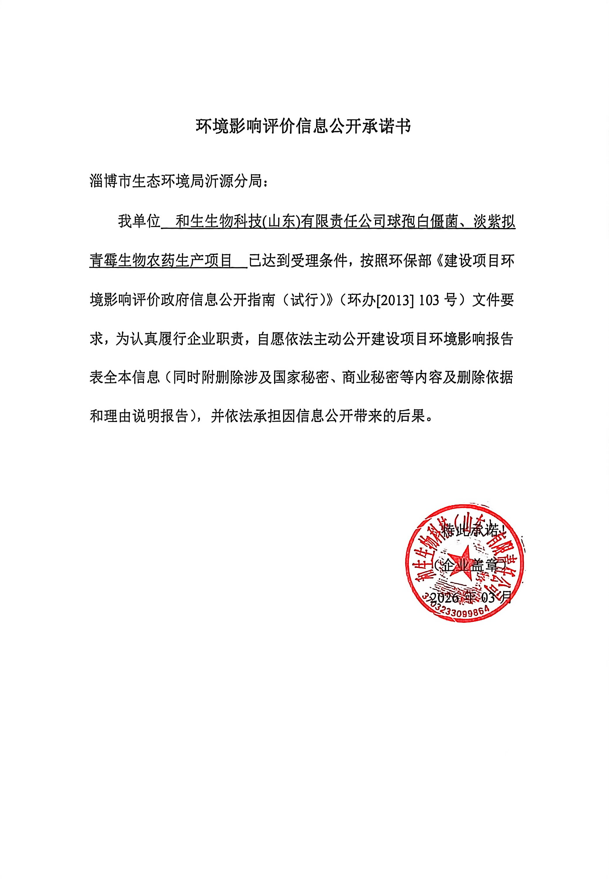 和生生物科技(山东)有限责任公司球孢白僵菌、淡紫拟青霉生物农药生产项目 |