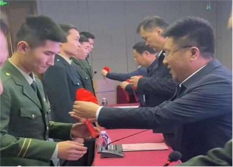 仪式上全体人员奏唱国歌、重温军人誓词,政府副县长、县公安局局长张秀光致欢迎词,并为退役士兵佩戴光荣花,送上退役祝福,营造了参军光荣、退役荣耀的浓厚氛围。