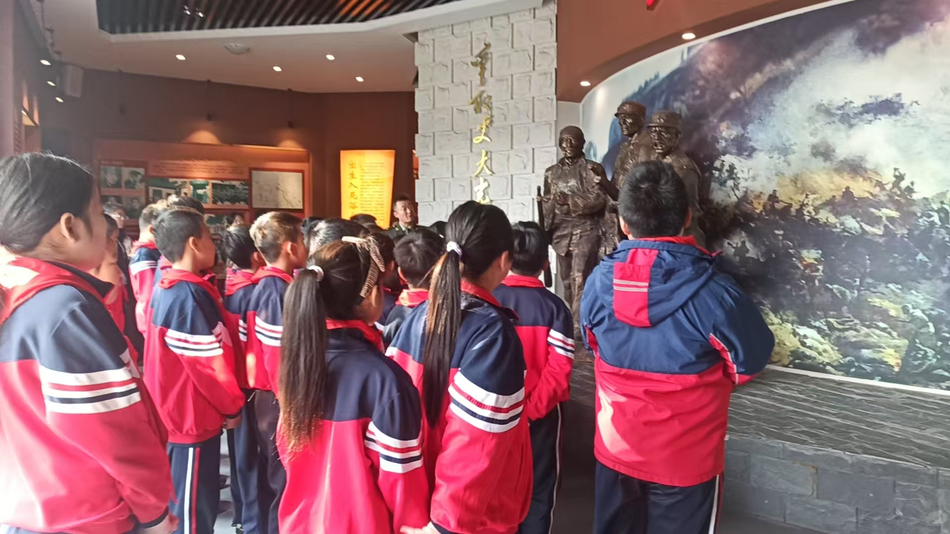 随后一众师生参观革命历史纪念馆,我局张贞亮同志为师生们讲解展馆,随后由县革命烈士陵园管理中心袭富成主任,为参与活动的志愿者和荆山学校师生,讲解了现役和退役军人相关政策。同时对广大群众关心关注的军人政治待遇和经济待遇作出详细说明。最后向各位群众代表讲述了“全国双拥模范县”的成绩和下一步烈士陵园改造提升三期工程的情况。