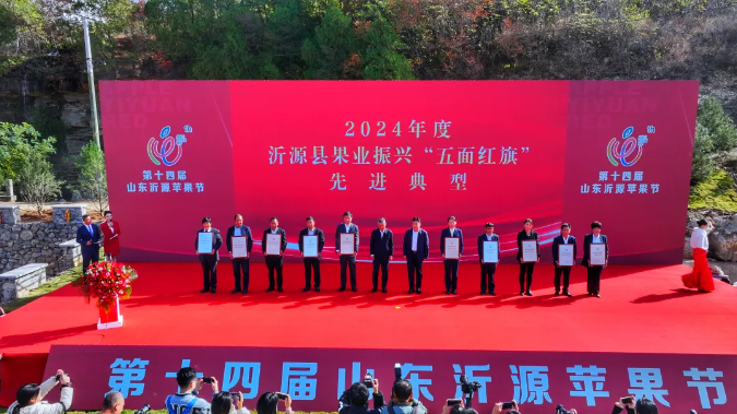 活动现场议程满满,内容丰富。第十四届山东沂源苹果节围绕“文旅农商展风采 ‘锶都’沂源健康行”主题,通过主旨演讲、成果发布、揭牌签约、颁奖授牌、母树认领等环节,深入探讨了当前水果产业高质量发展的路径分析,肯定了“沂源红”富锶苹果的品质,为日后沂源果业发展指明了方向,为沂源乡村产业振兴提供了有力支撑。