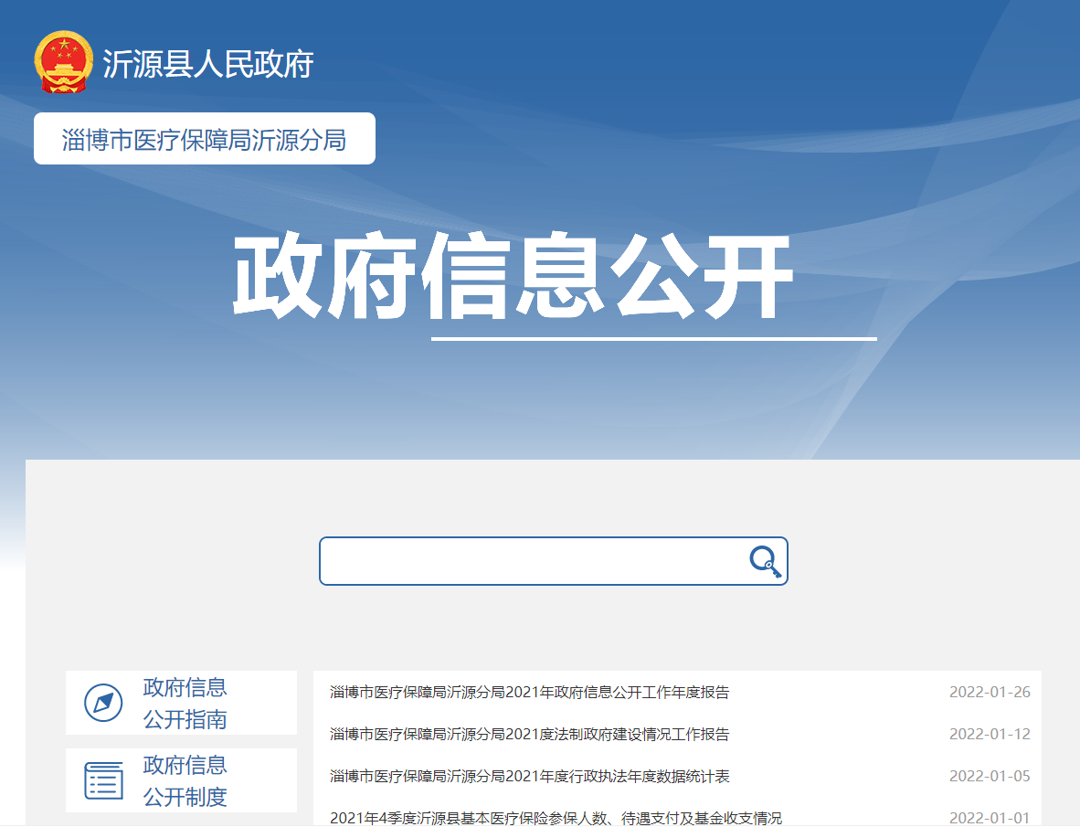 二是依据信息公开的有关要求在政府门户网站政府公开信息栏目及时更新各类重点领域信息,全力推进淄博市医疗保障局沂源分局政府公开信息的公开。