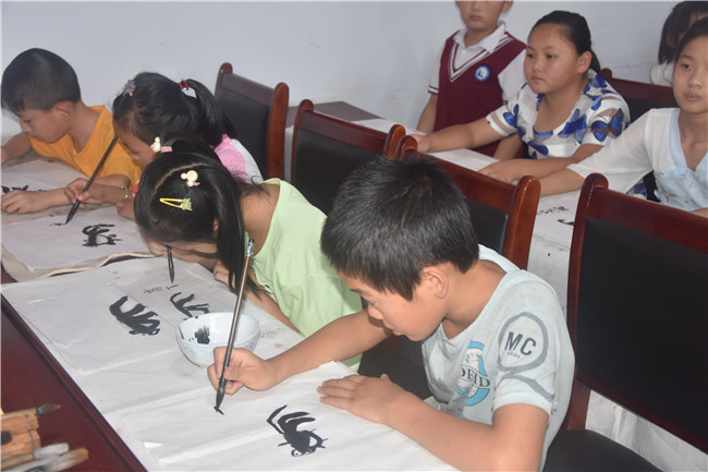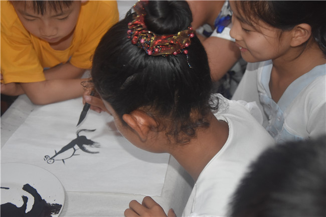 活动中,老师们给同学们讲了国画的知识,并仔细地教孩子怎么使用毛笔。