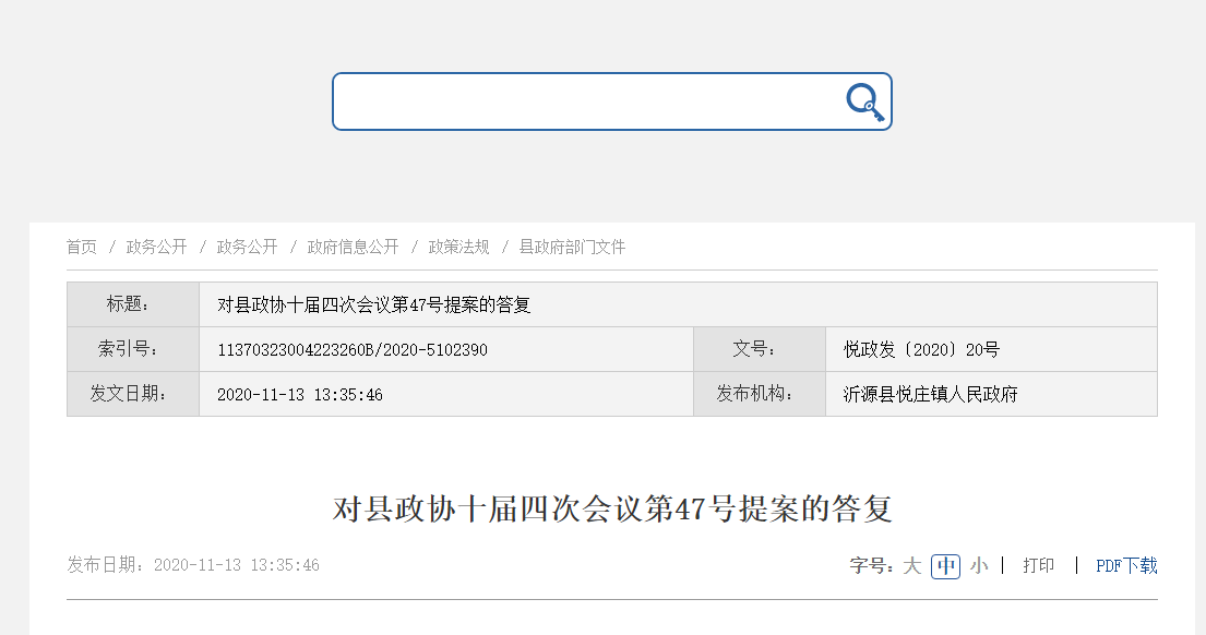 4、同时在沂源县悦庄镇人民政府一楼设置政务公开专区。(沂源县中心街1号,办公时间:工作日8:20-11:50  13:30-17:00,联系电话:3420031)