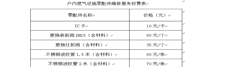 二、户内燃气设施维修收费