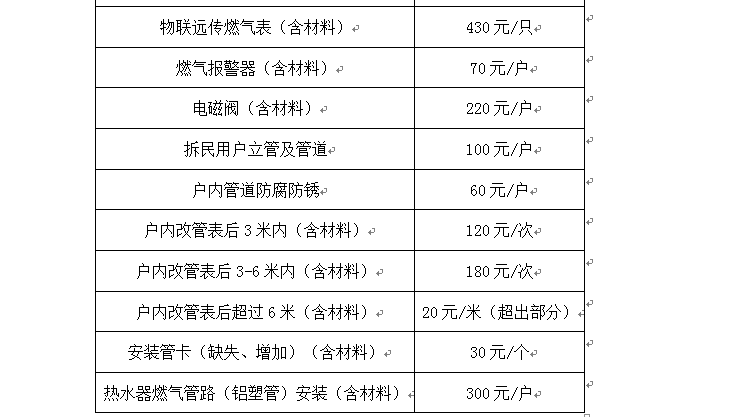 1、户内管道燃气用户燃气灶具前(不含燃气灶具)燃气设施、燃气泄漏安全保护装置和连接软管的维护和更新由公司给予免费维修维护更新。