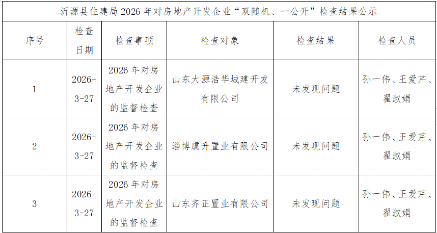 沂源县住建局2026年第一季度行政执法情况检查结果公开
