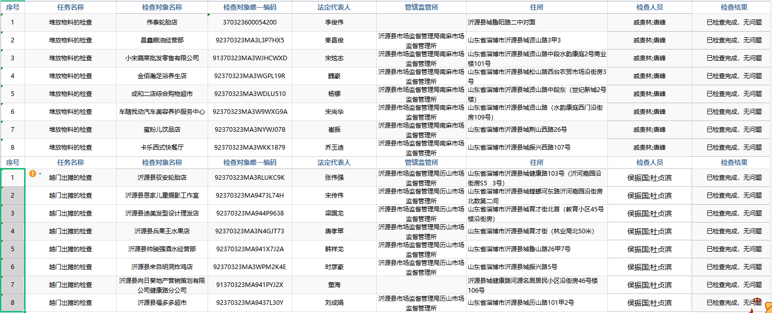 沂源县综合行政执法局2021年“双随机一公开”检查结果公示(二)