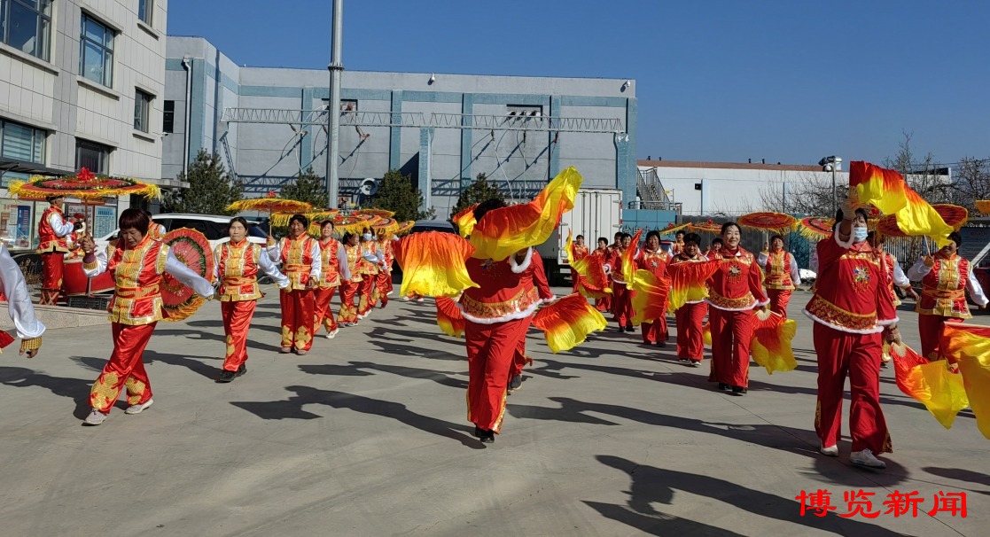 伴随着有节奏的鼓点和指挥员的吆喝声,扇舞秧歌、飞龙走狮、旱船高跷……表演者们个个热情高涨、神采飞扬。他们敲着欢庆的锣鼓,舞动着金龙和彩绸,跟着韵律翩翩起舞,欢快的气氛瞬间达到高潮。